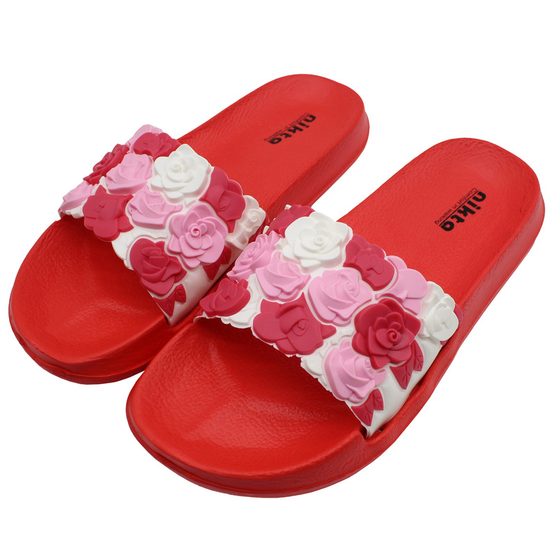 دمپایی نیکتا مدل گل برجسته کد K1 497 رنگ قرمز