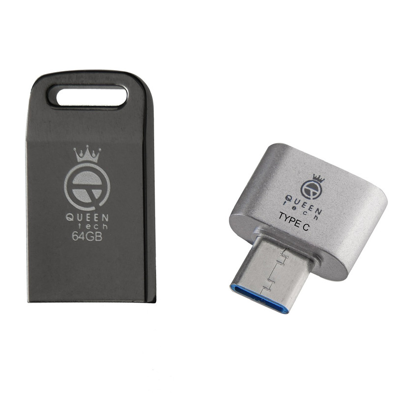 فلش مموری کوئین تک مدل QUICK C-PLUS ظرفیت 64 گیگابایت با رابط USB به همراه مبدل USB-C