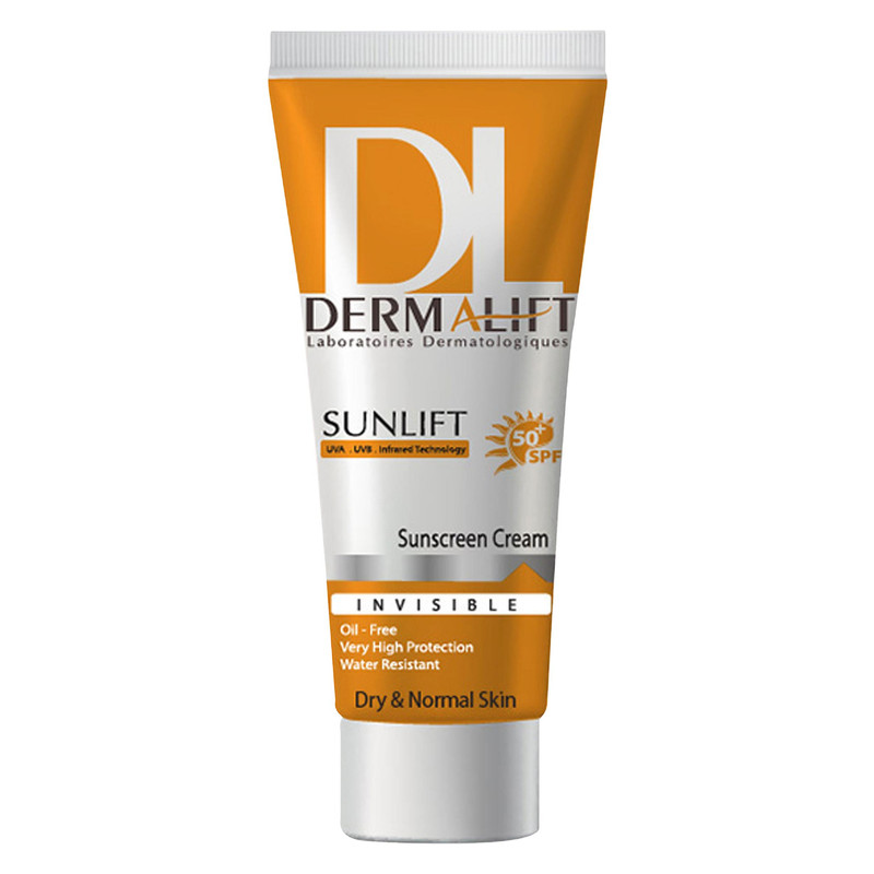 کرم ضد آفتاب بیرنگ درمالیفت مدل سانلیفت SPF50 حاوی محافظ UVA و UVB مناسب پوستهای خشک و معمولی حجم 40 میلیلیتر