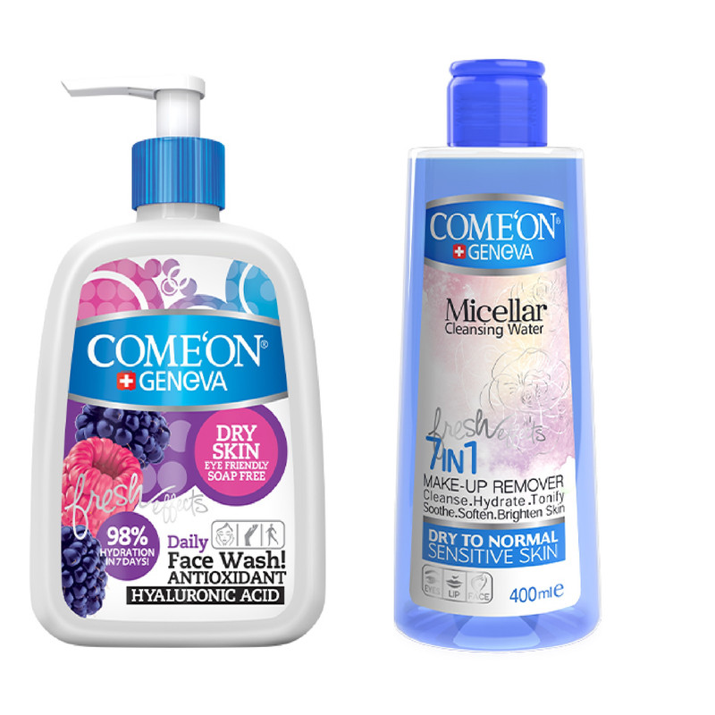 ژل شستشو صورت کامان مدل Dry حجم 500 میلی لیتر به همراه آب پاک کننده آرایش صورت کامان مدل DRY SKIN حجم 400 میلی لیتر