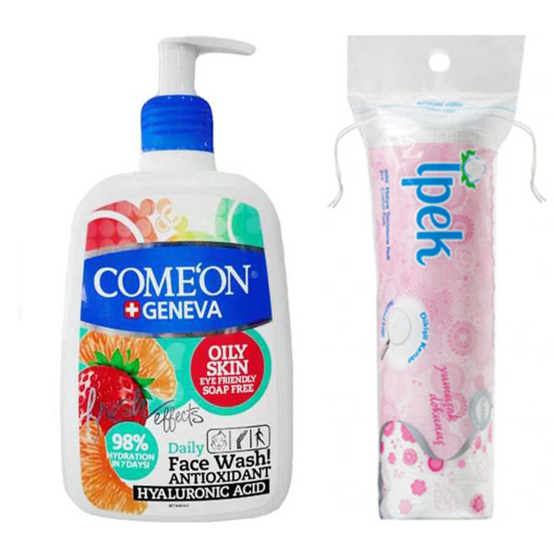 ژل شستشو صورت کامان مدل Oily حجم 500 میلی لیتر به همراه پد پاک کننده آرایش ایپک بسته 70 عددی