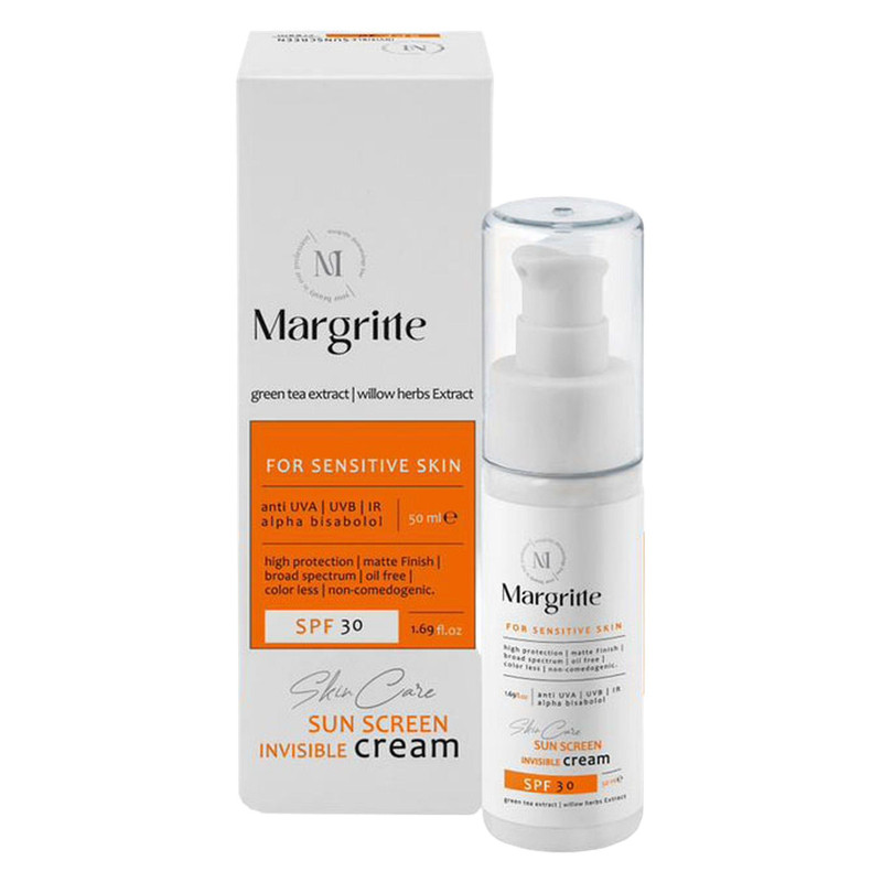 کرم ضد آفتاب بدون رنگ مارگریت SPF 30 مدل 03 مناسب پوستهای حساس حجم 50 میلیلیتر