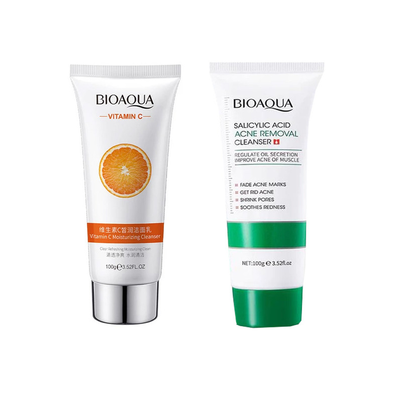 فوم شستشو صورت بایو آکوا مدل ویتامین C حجم 100 میلی لیتر به همراه فوم شستشو صورت بایو آکوا مدل سالیسیلیک اسید
