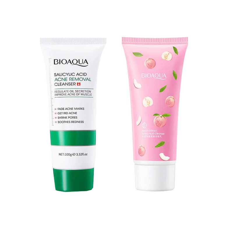 فوم شستشو صورت بایو آکوا مدل هلو حجم 100 میلی لیتر به همراه فوم شستشو صورت بایو آکوا مدل سالیسیلیک اسید