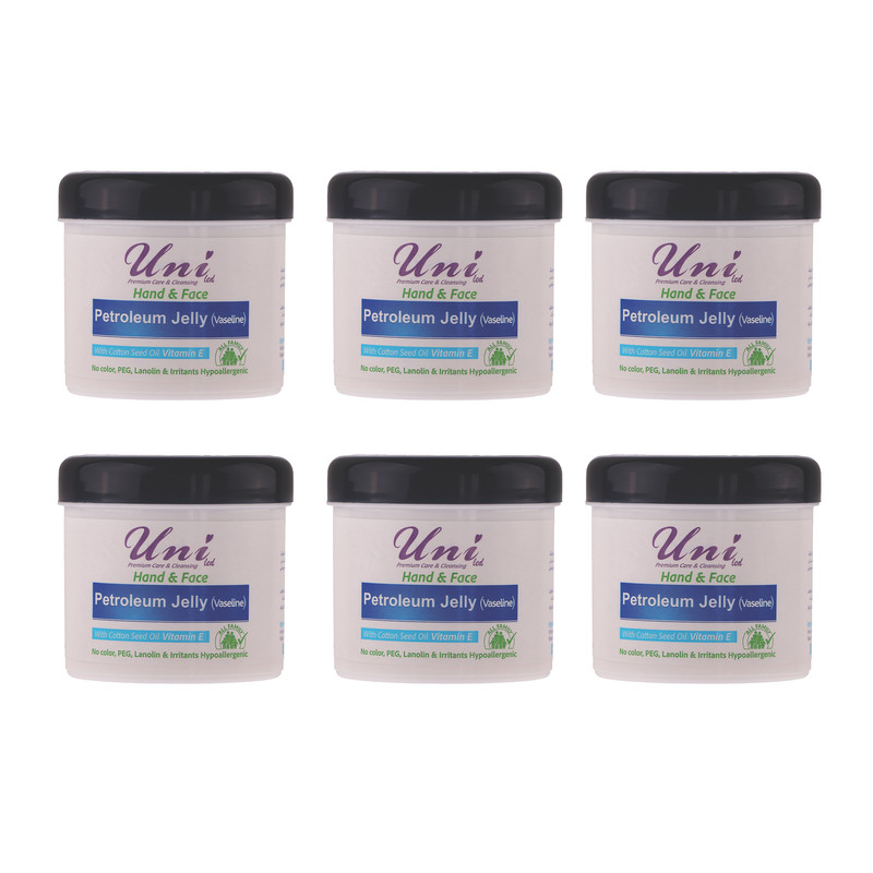 وازلین دست یونی لد مدل روغن پنبه دانه حاوی ویتامین E و B5 مناسب برای انواع پوست وزن 100 گرم مجموعه 6 عددی