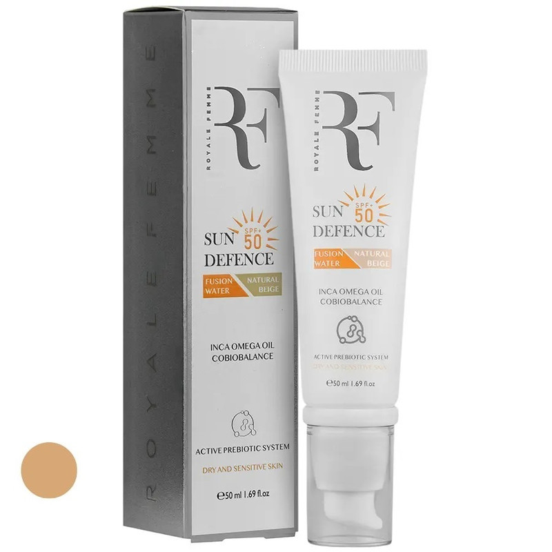 کرم ضد آفتاب رنگی آر.اف رویال فم SPF50 مدل Fusion مناسب برای پوست خشک و حساس حجم 50 میلی لیتر