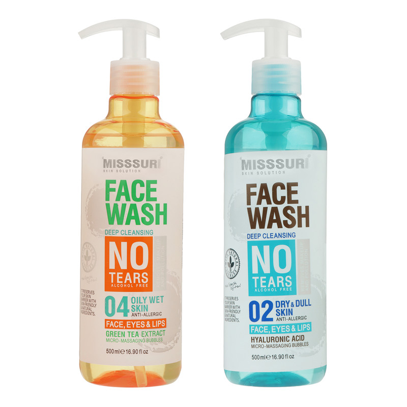 ژل شستشوی صورت میسوری مدل چای سبز مناسب برای پوست چرب حجم 500 میلی لیتر به همراه ژل شستشوی صورت میسوری مدل هیالورونیک اسید مناسب برای پوست خشک حجم 500 میلی لیتر