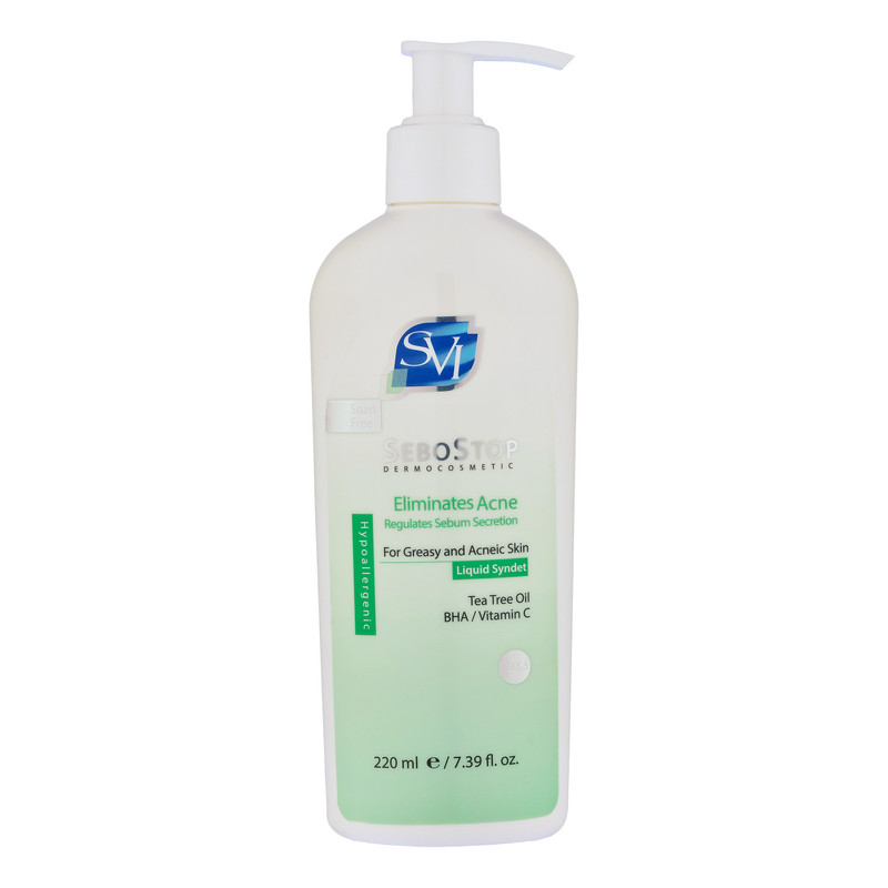 کرم شوینده صورت اس وی آی مدل SEBOSTOP مناسب پوست چرب و آکنهای حجم 220 میلیلیتر