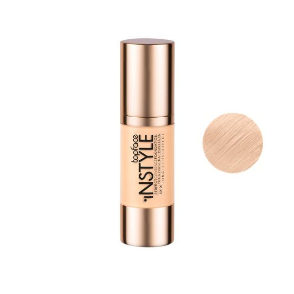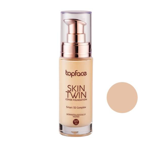 کرم پودر مایع spf20 تاپ فیس مدل اسکین توئین شماره 005 مناسب پوست نرمال و خشک حجم 32 میلی لیتر