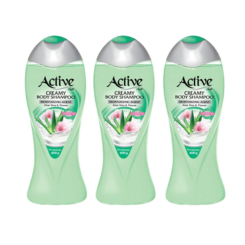 شامپو بدن اکتیو مدل آلوئه ورا وزن 400 گرم بسته 3 عددی