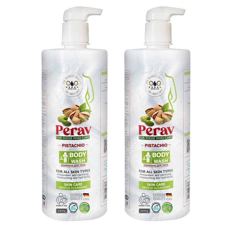 شامپو بدن پراو مدل پسته مناسب برای انواع پوست وزن 1000 گرم مجموعه دو عددی