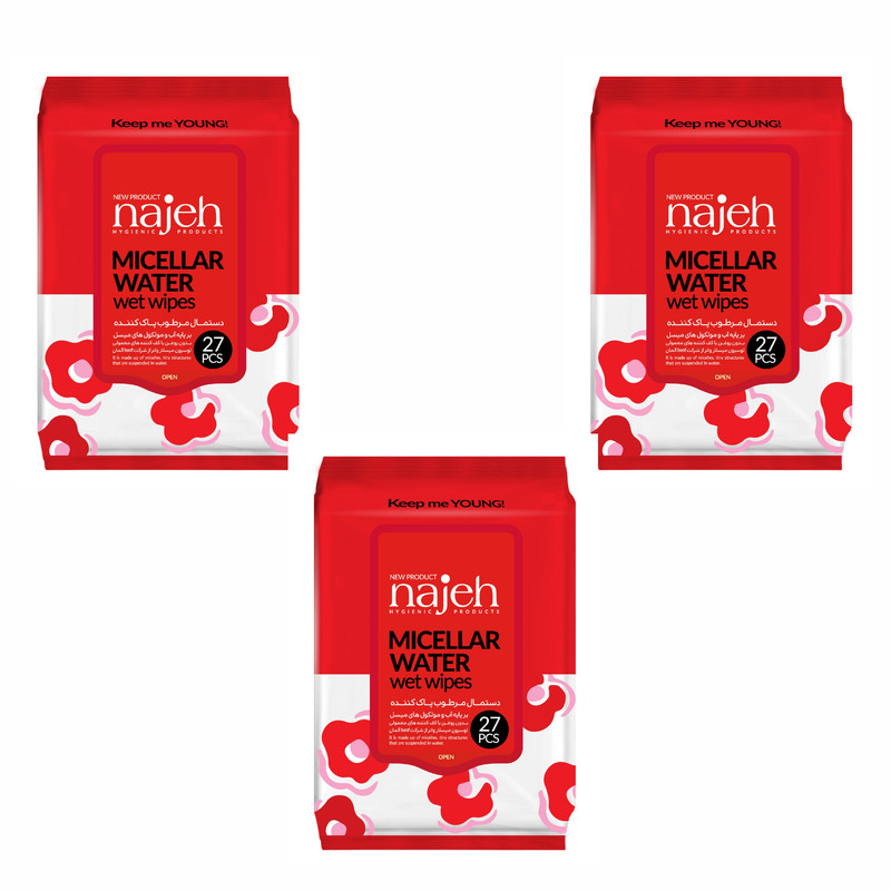 دستمال مرطوب ناژه مدل Micellar Water سه بسته 27 عددی