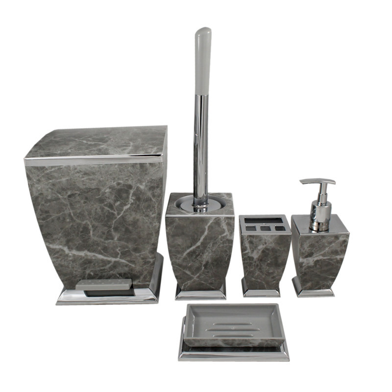 ست سرویس بهداشتی 5 تکه هارمونی مدل روشا طرح سنگ کروم