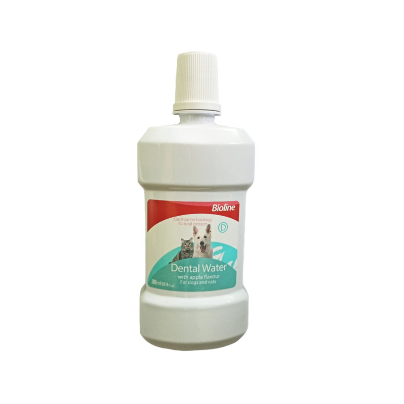 دهانشویه سگ و گربه بایولاین مدل dental water حجم 300 میلی لیتر