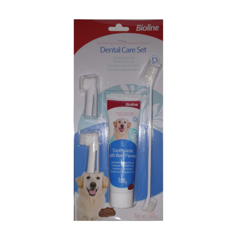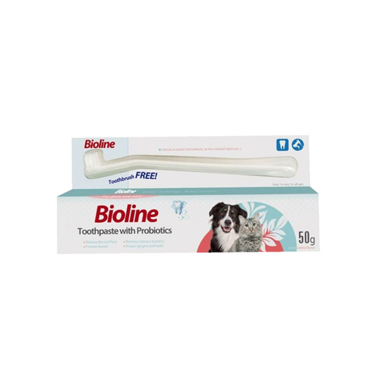 ست مسواک و خمیر دندان سگ بایولاین مدل Probiotics وزن 50 گرم