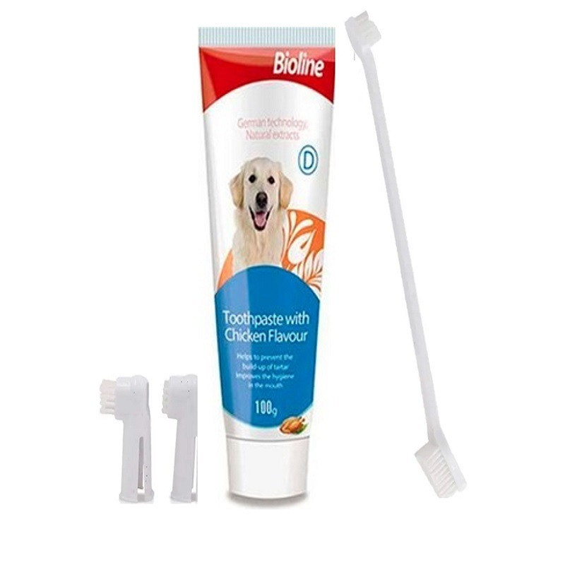 ست مسواک و خمیر دندان سگ بایولاین مدل Chicken وزن 100 گرم