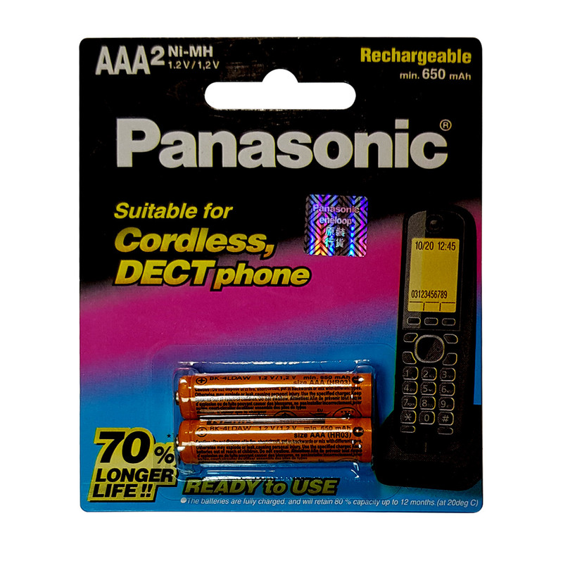 باتری نیم قلمی قابل شارژ پاناسونیک مدل BK-4LDAW ظرفیت 650 میلی آمپر ساعت بسته 2 عددی