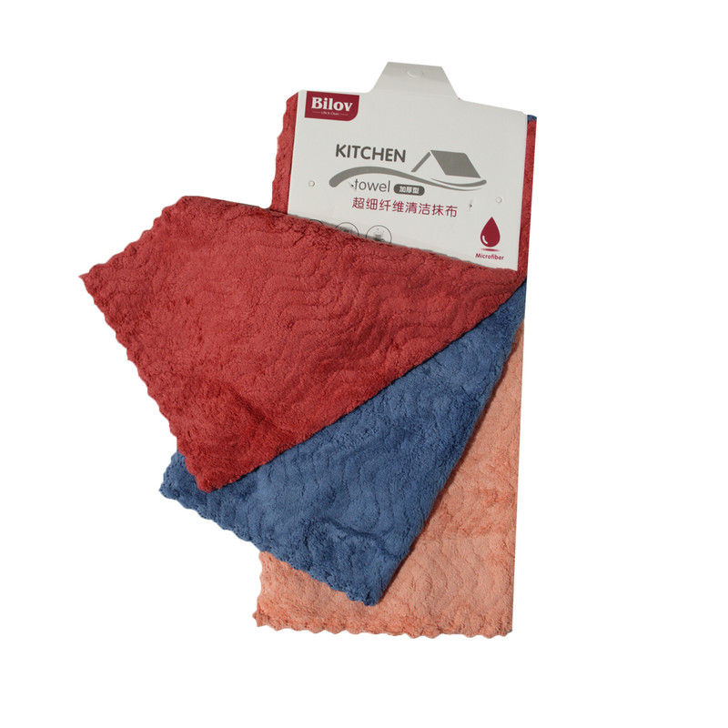 دستمال آشپزخانه مدل حوله ای میکروفایبر سوزنی بسته 3 عددی