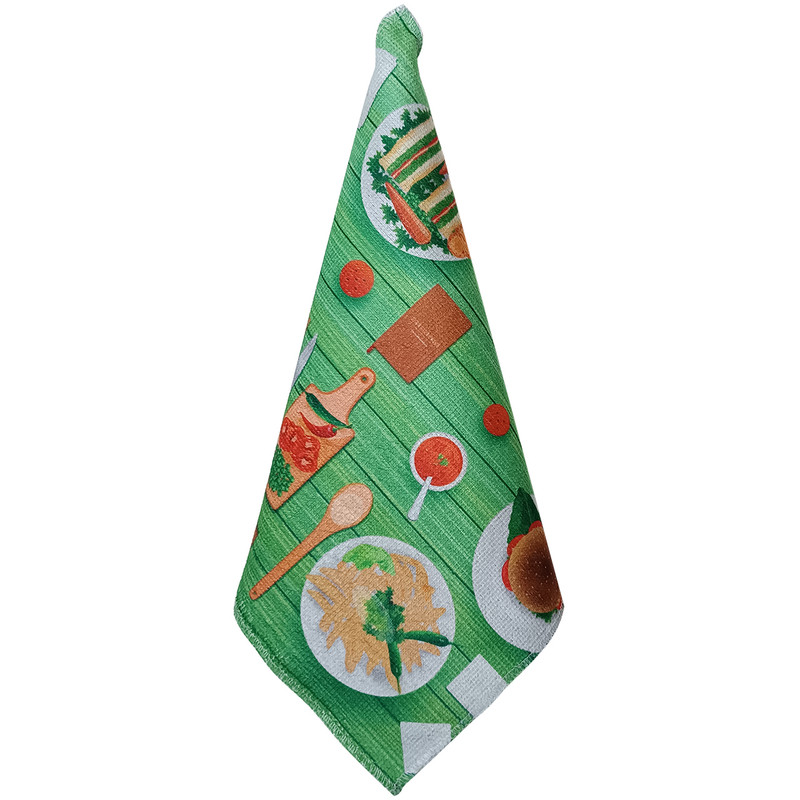 دستمال نظافت آشپزخانه بی تی مدل میکروفایبر طرح میز غذا کد 30x30W213