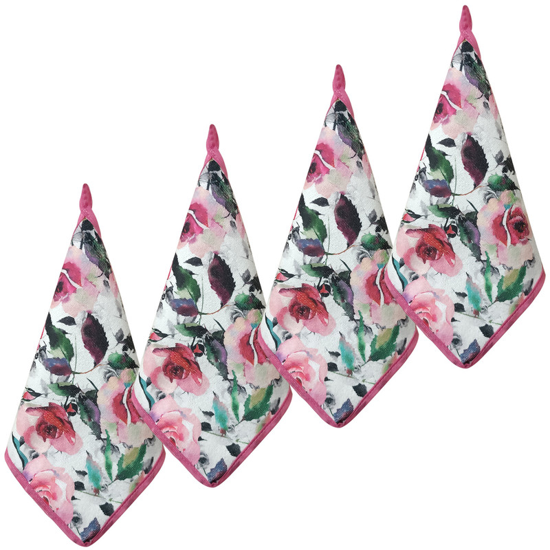 دستمال نظافت آشپزخانه بی تی مدل میکروفایبر لوکس طرح گل کد 25x25W277 بسته 4 عددی
