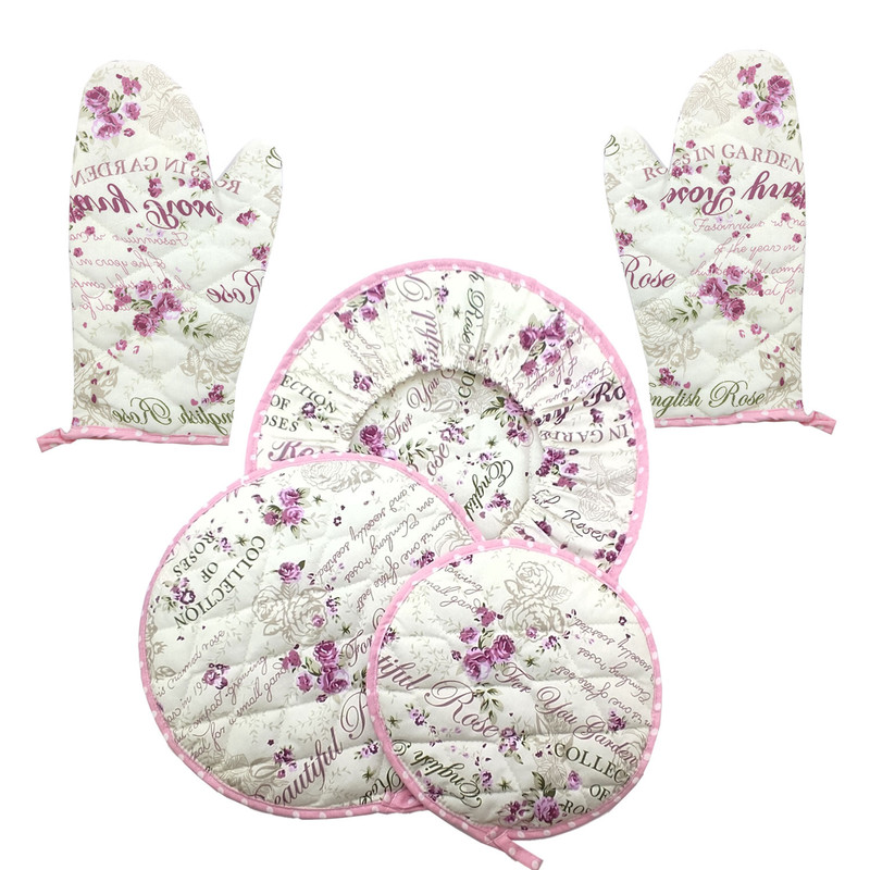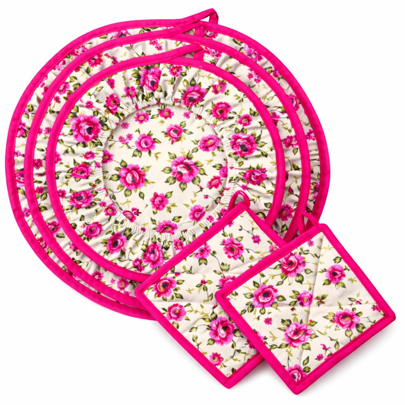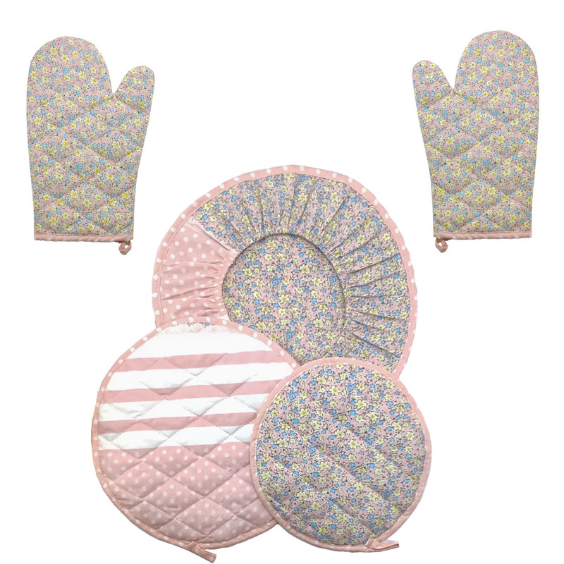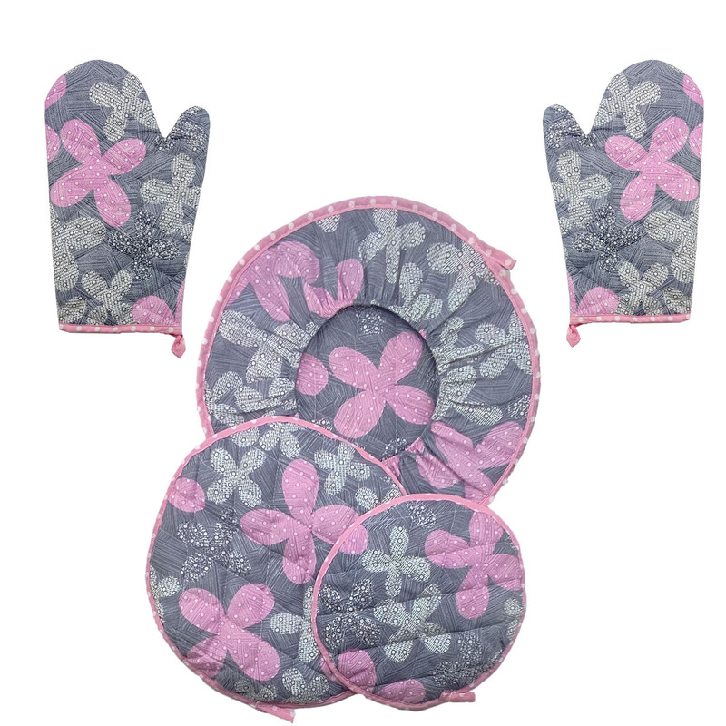 ست لوازم پارچه ای آشپزخانه 5 تکه طرح گلدار مدل باران