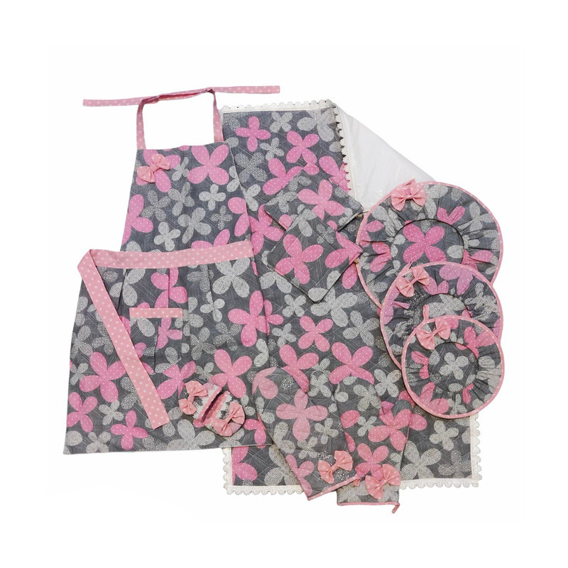 سرویس آشپزخانه 10 پارچه طرح شاپرک صورتی