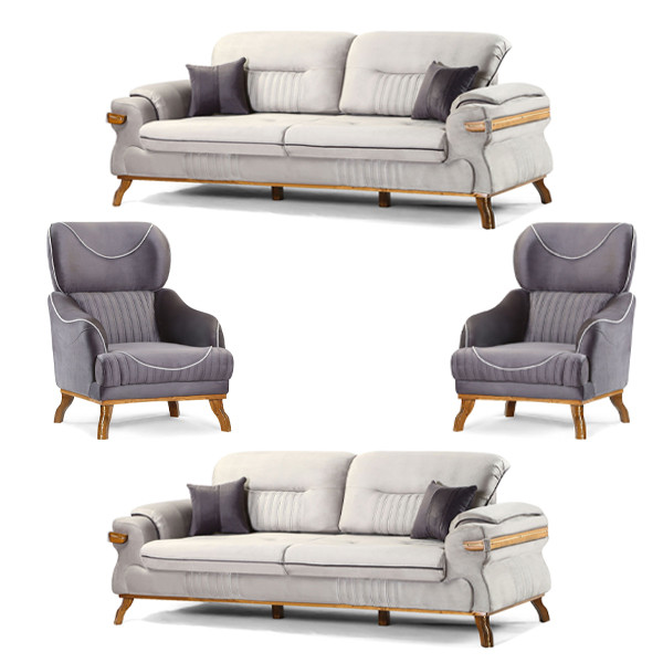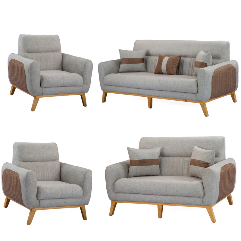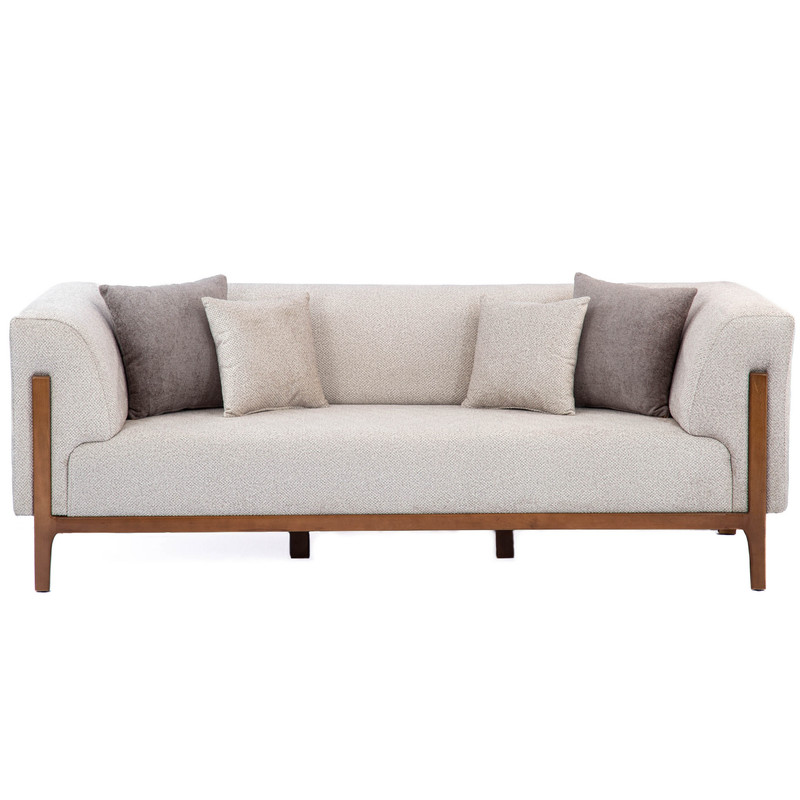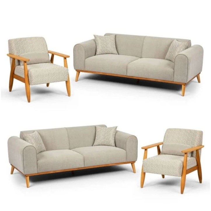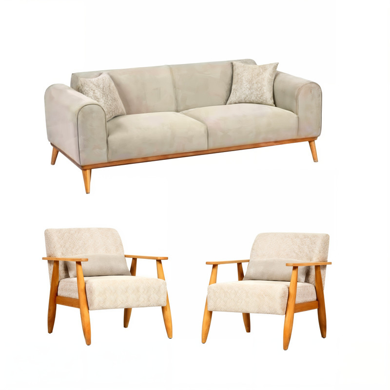 مبل راحتی هشت نفره با روکش پارچه و پایه چوب گالری چوب آشنایی مدل Khod-Mal-Ar به همراه 6 کوسن