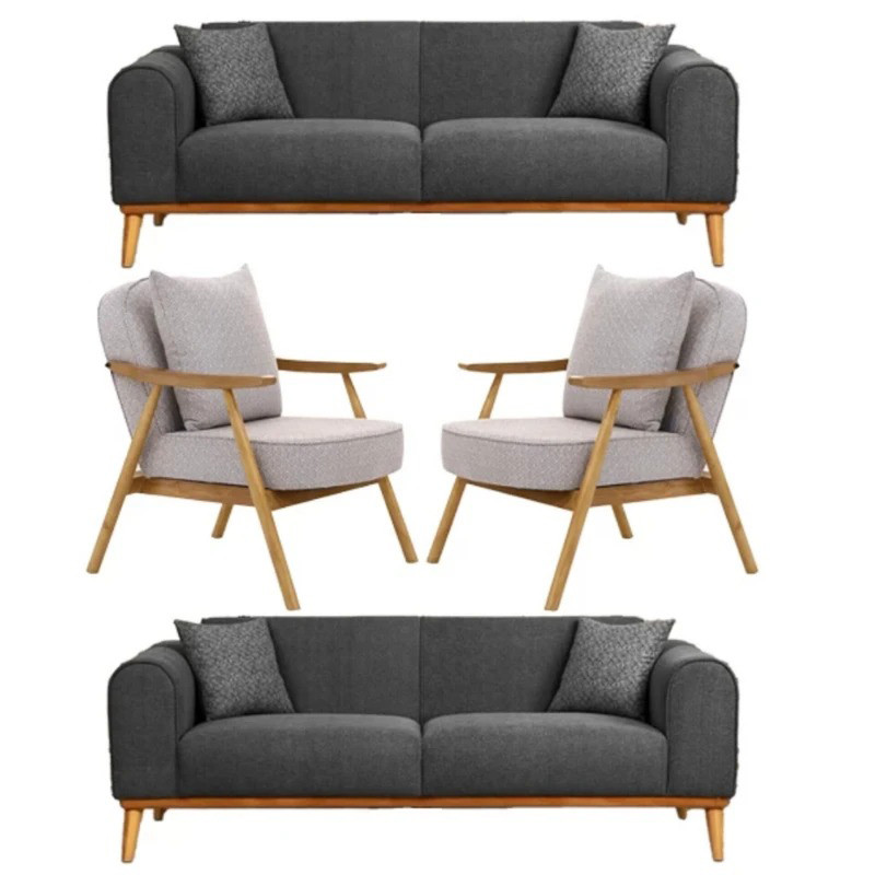 مبل استیل نه نفره با روکش پارچه و پایه چوب مدل شاپسند به همراه میز عسلی و به همراه 2 کوسن