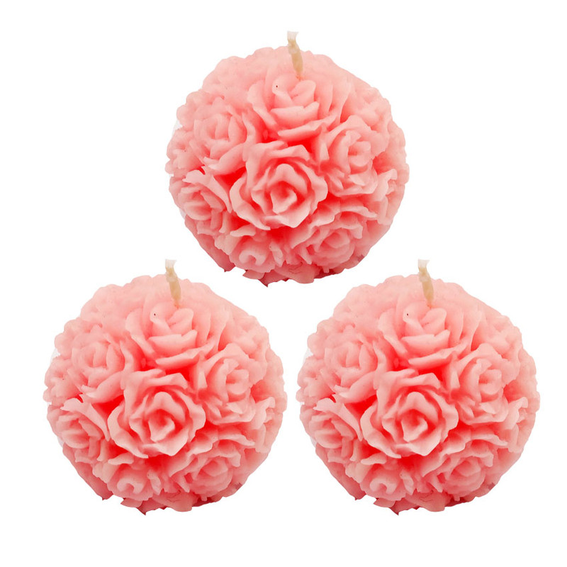 شمع مدل توپک گل رز بسته 3 عددی