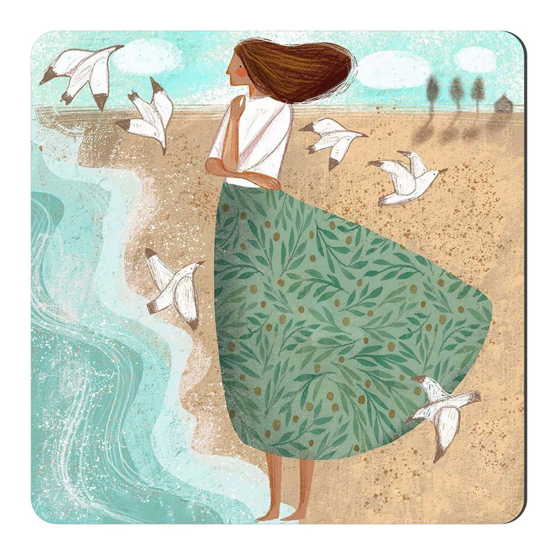 مگنت یخچال طرح بانو و مرغان دریایی کد wmg263