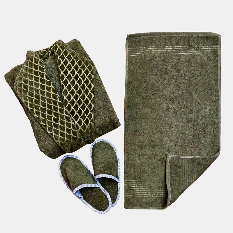 سرویس حوله پالتویی ۳ تکه هنرمند مدل پولکی سایز ۱۲۵