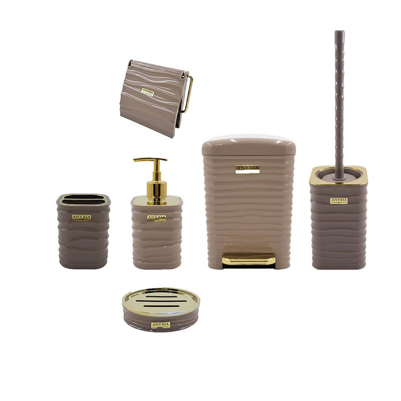 ست سرویس بهداشتی 6 تکه اطلس مدل سلین طرح چوب