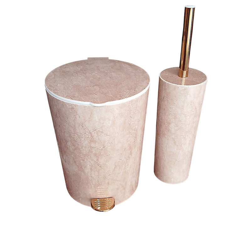 ست سطل زباله و فرچه لیمون مدل ماربل