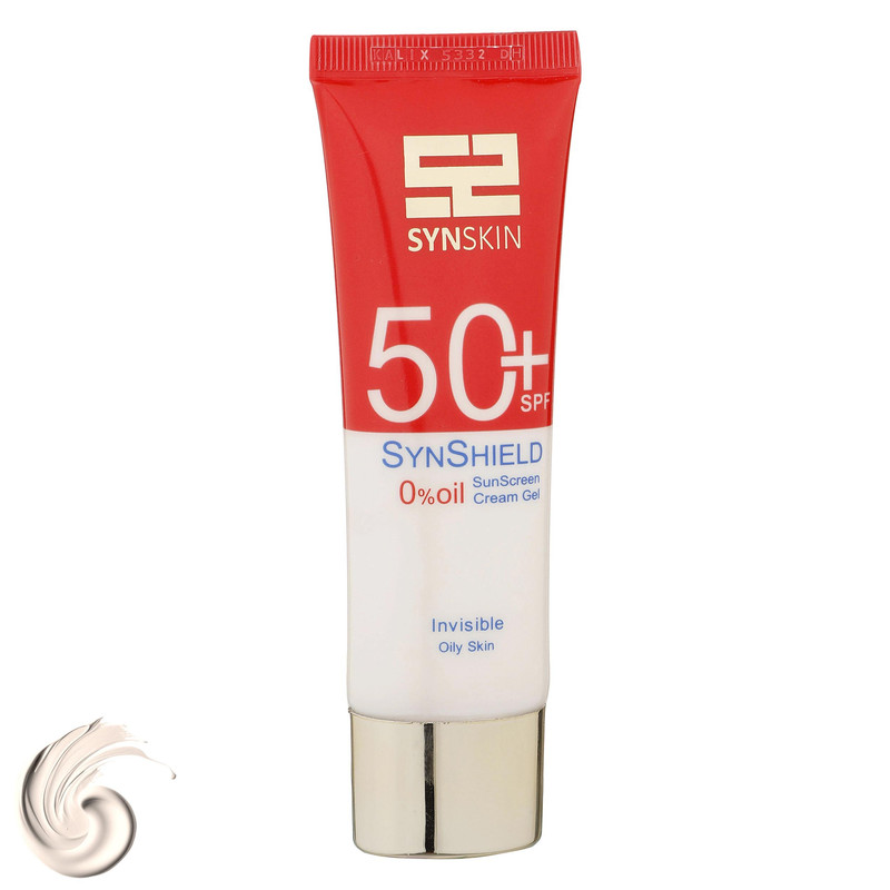 ژل کرم ضدآفتاب ساین اسکین بدون رنگ SPF50 مدل SynShield، مناسب پوستهای چرب، حجم 50 میلیلیتر