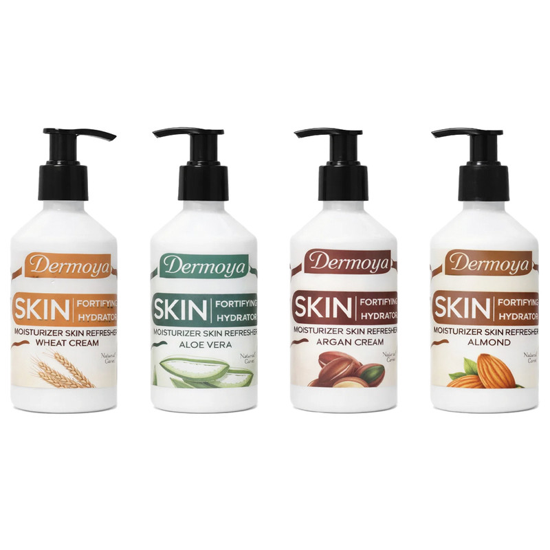 کرم مرطوبکننده دست، صورت، گردن، بدن، لب و پا درمویا مدل Dermoya مناسب انواع پوست حجم 250 میلیلیتر مجموعه 4 عددی