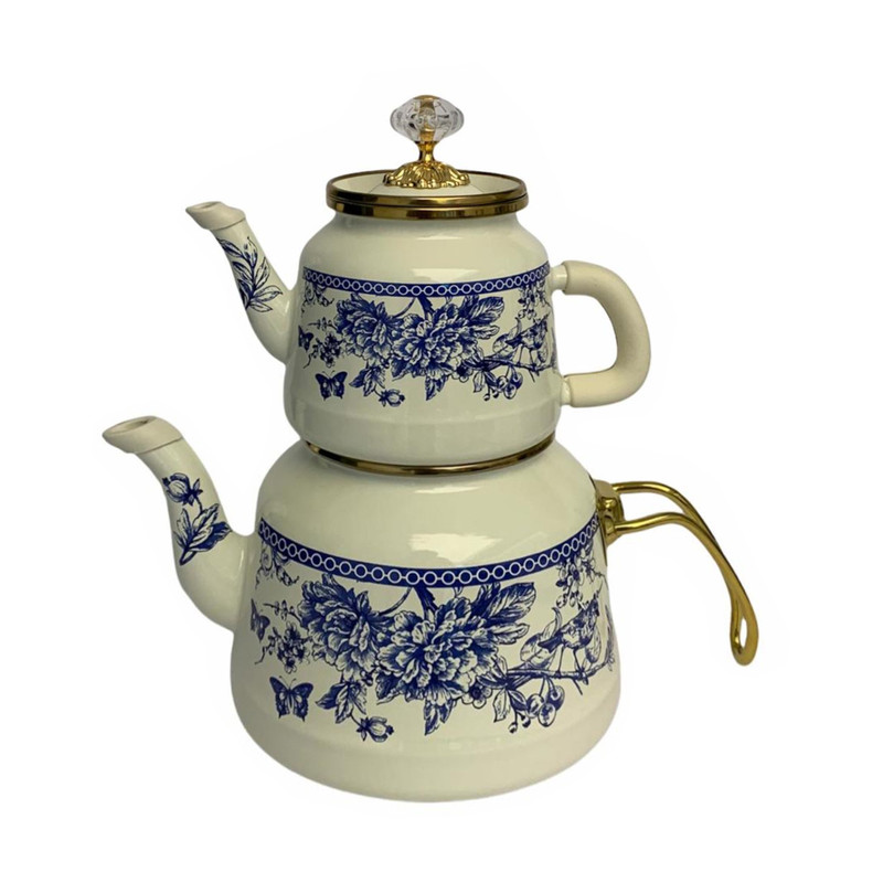 ست کتری و قوری مدل لعابی گل دار گنجایش کتری 2.5 لیتر گنجایش قوری 1لیتر