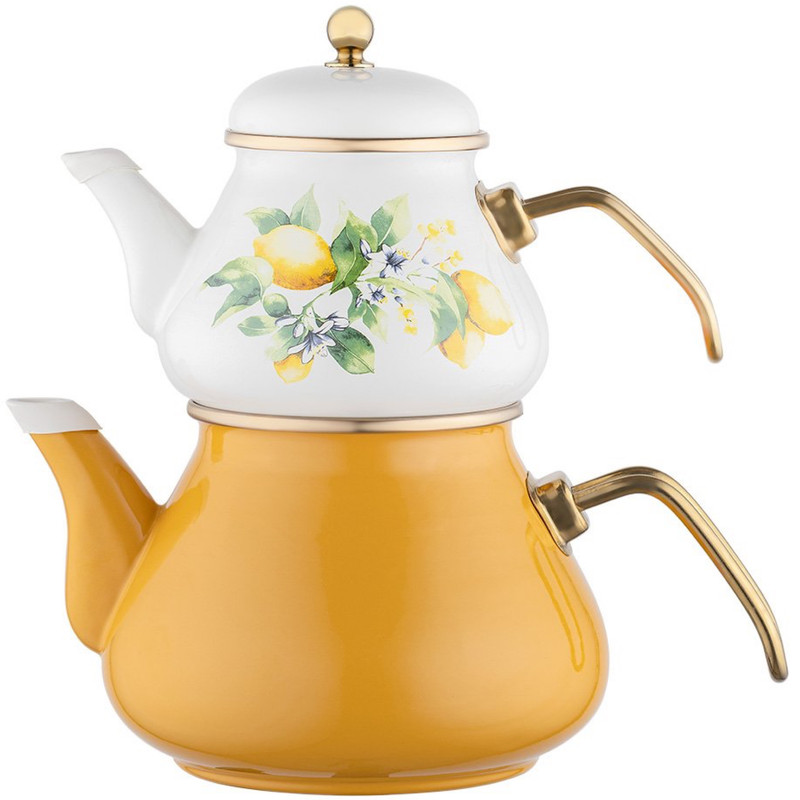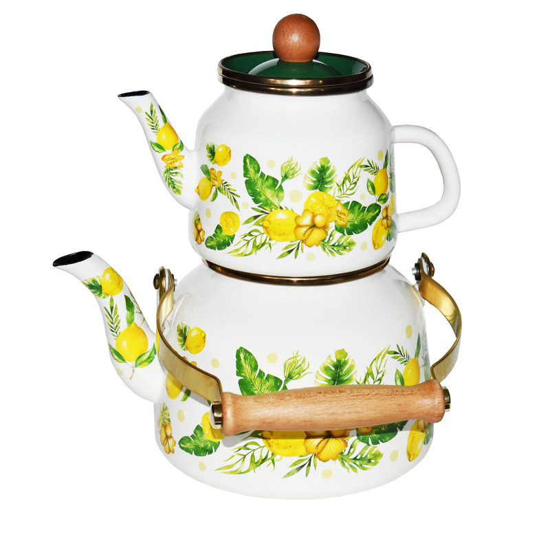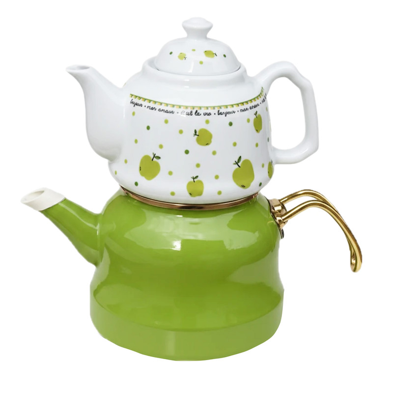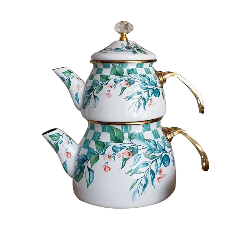 ست کتری و قوری مدل لعابی برگی گنجایش کتری 2.5 لیتر گنجایش قوری 1 لیتر
