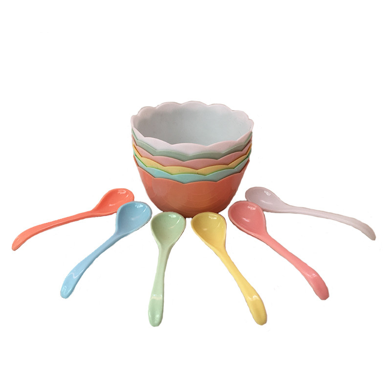 پیاله مدل رنگارنگ بسته 6 عددی به همراه قاشق