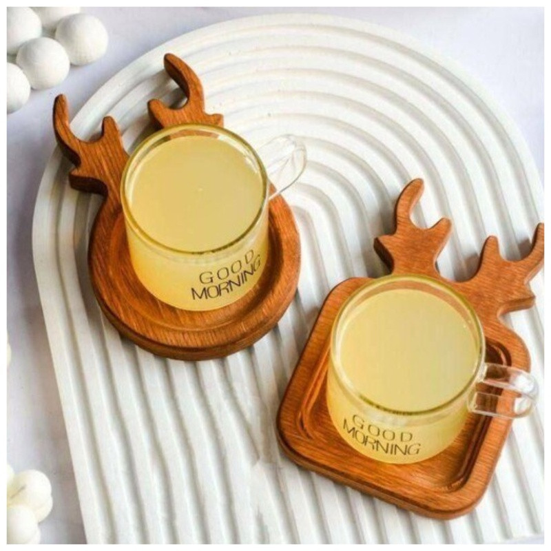 زیر لیوانی مدل مربع گوزنی چوبی مجموعه 6 عددی