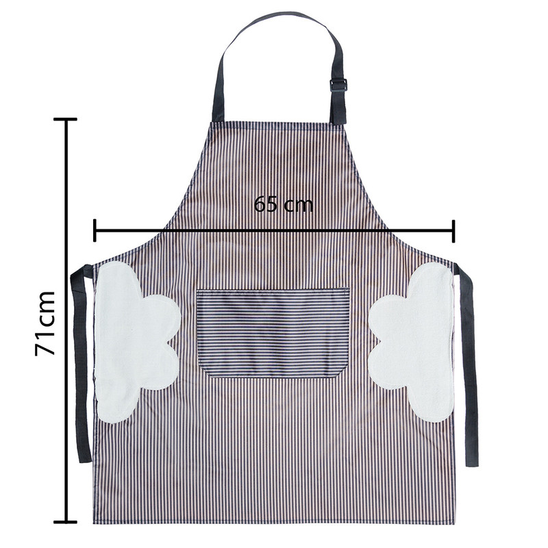 عدم نفوذ آب و طوبت دارای دو عدد حوله جیبی دوخته شده روی پیش بند جهت گرفتن نم دست ها دارای یک جیب بزرگ در قسمت جلویی پیش بند طول 70 سانتی متر عرض 67 سانتی متر مناسب برای همه سایزها است