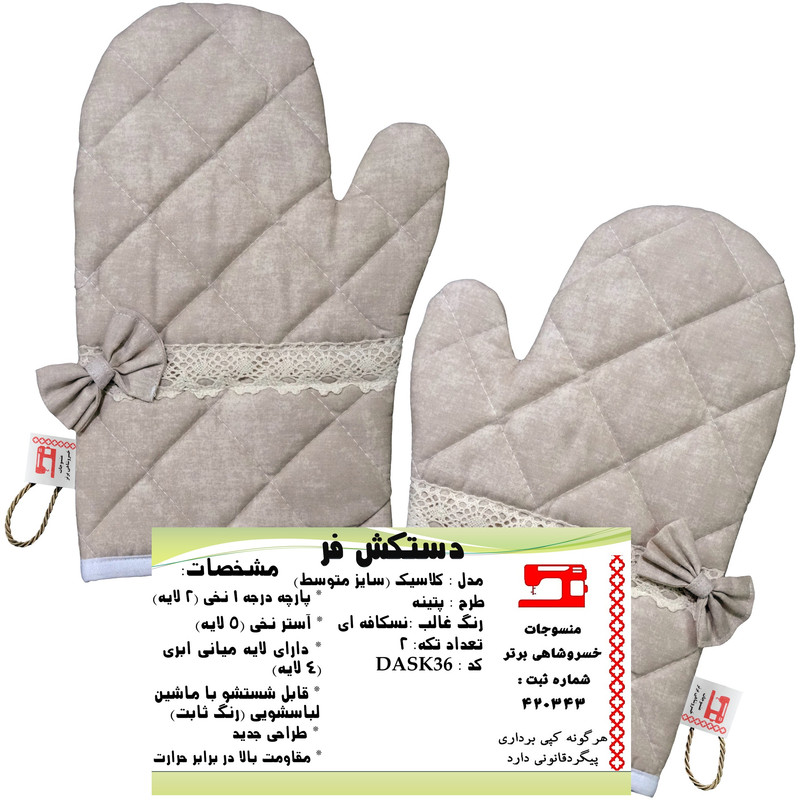 دستکش فر منسوجات خسروشاهی برتر مدل کلاسیک طرح پتینه بسته 2 عددی کد DASK36