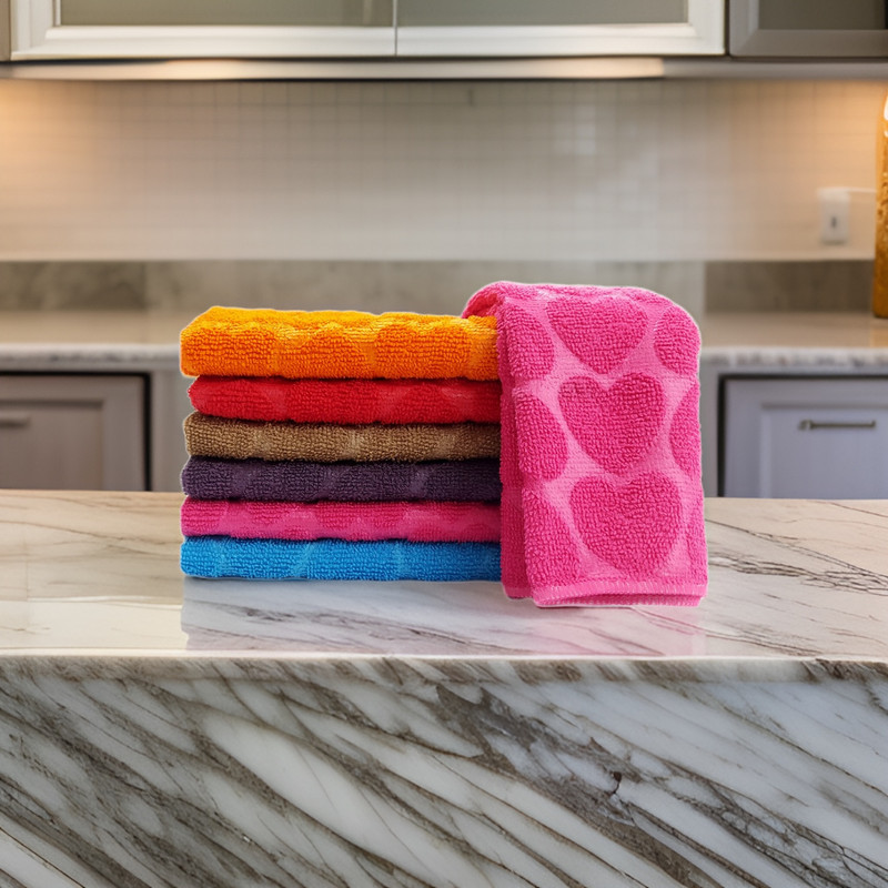 دستمال آشپزخانه ابراف طرح قلب مدل ABH306 بسته 6 عددی