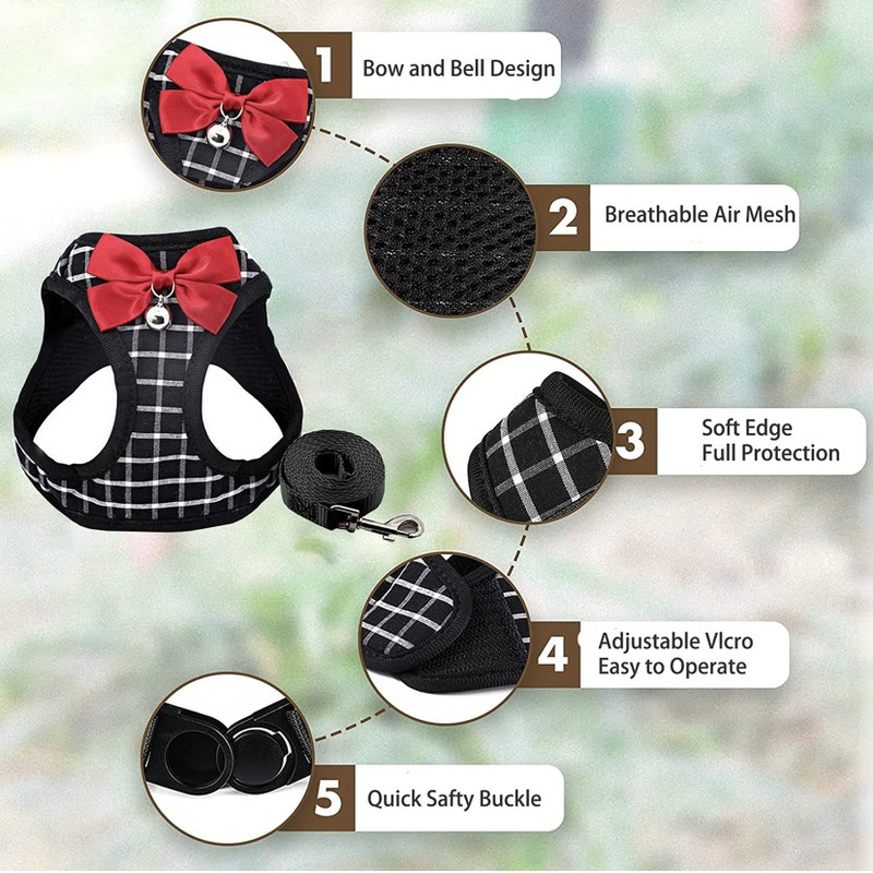 این قلاده و بند مخصوص گربهها و حیوانات خانگی کوچک مانند سگهای نژاد کوچک و خرگوشها طراحی شده است. محصول از پارچه مشبک با قابلیت تنفس ساخته شده تا حیوان شما در حین استفاده، احساس راحتی و خنکی داشته باشد. طراحی این قلاده به صورت ضد فرار است و به خوبی روی بدن حیوان فیکس میشود، بنابراین در پیادهروی یا سفر، ایمنی حیوان تضمین میگردد.