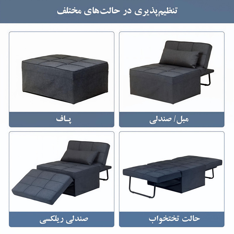 دستهبندی: مبلجنس پایه: فلزتعداد تکه: 1سبک مبل: راحتیمدل مبل: مبل تختخوابشوعرض هر تکه : 80 سانتیمترارتفاع پایه تا نشیمنگاه هر تکه : 45 سانتیمترعمق نشیمنگاه هر تکه : 45 سانتیمترعرض : 80 سانتی مترارتفاع : 90 سانتیمترجنس روکش : پارچهجنس کلاف : فلزنوع مبل : یک نفرهنمایش بیشتر