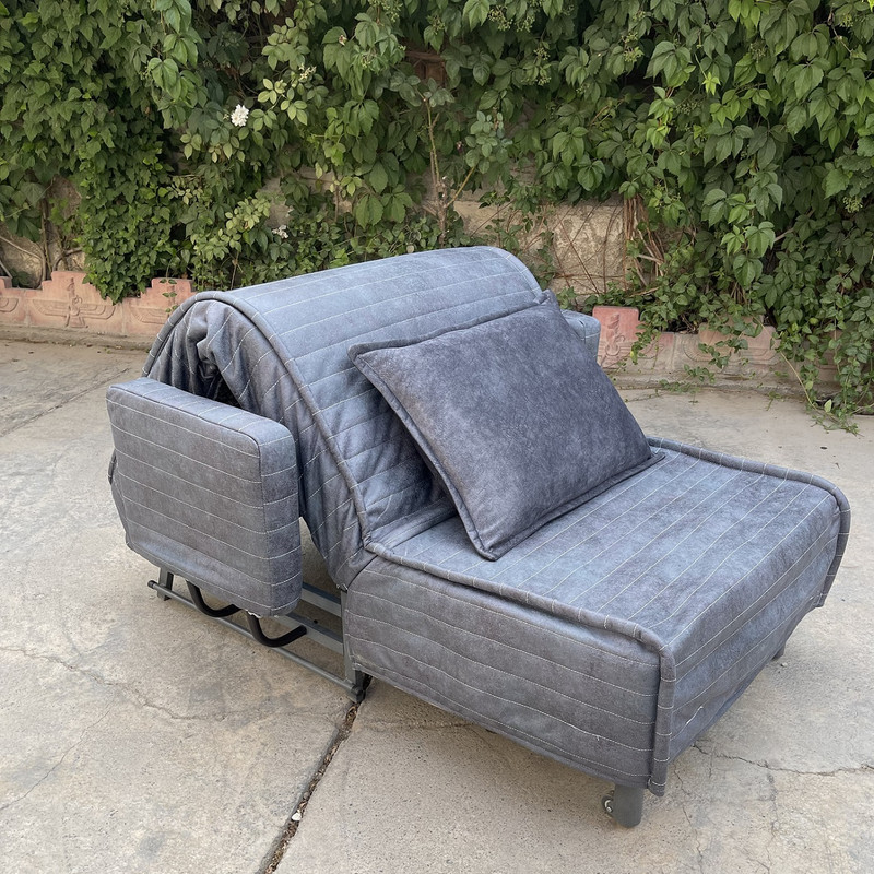 مبل تختخواب شو یک نفره گالری چوب آشنایی آرتا دارای طرح بسیار زیبا و در عین راحتی مدلی مدرن و جذابی دارد. کلاف اصلی از فلز می باشد. دوخت ظاهری کار از نخ ابریشم و با رنگ شبیه پارچه می باشد که باعث زیبایی بیشتر کار شده است در پشتی این کار از اسفنج 30 کیلویی استفاده شده تا حالت نرم تر و ارتجاعی تر نسبت به سایر مدل ها داشته باشد . حس راحتی بیشتری میشود. طبق استاندارد جهانی پایه های کمکی دارند و از استحکام کامل برای نشیمن برخوردارهست.طراحی پایه های این مبل به نحوی است که به راحتی میتوان زیر آن را نظافت کرد و احتیاجی به جا به جایی مبل ندارد. جنس لایه میانی فوم و اسفنج، جنس بدنه و کلاف فلز، وزن حدودا ۳۰ کیلو است . روکش مبل با چسب و طناب بسته شده و قابلیت جداشدن و شستشو را دارد. دارای چرخ که به راحتی باز و بسته میشود. زیر کار کاملا مشخصه که نمد کار شده و کاملا کیفیت آن مشخص است . تفاوت جزئی در رنگ بالشت با رنگ مبل ممکن است باشد. دقت کنید که مدلها مثل عکس اصلی دسته دار هستن ، اما بدون دسته هم گذاشتیم که معلوم بشه دسته ها با پیچ و مهره ها قابل باز و بسته شدن دارد .