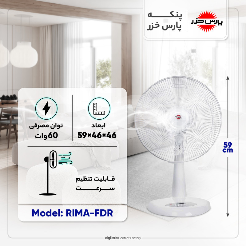 پنکه رومیزی پارس خزر مدل RIMA-FDR یکی از محصولات کاربردی و محبوب این شرکت به شمار میرود. این پنکه دارای بدنهای پلاستیکی با طراحی مدرن است که به خوبی با انواع دکوراسیونهای داخلی سازگار است.
