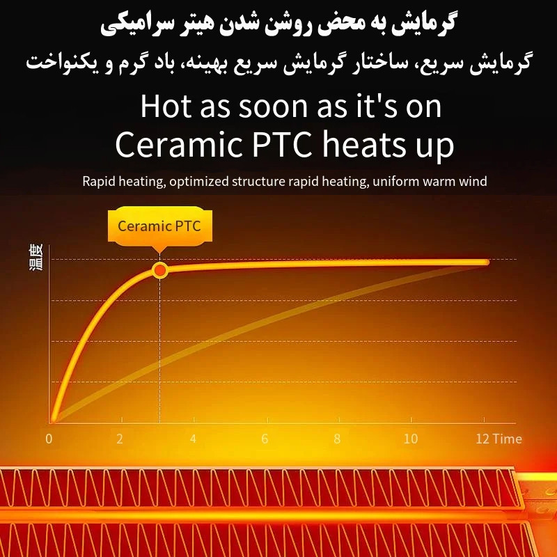 وجود فن قدرتمند علاوه بر افزایش سرعت گرمشدن، امکان توزیع یکنواختتر حرارت را ایجاد میکند تا هوای گرم تنها در یک نقطه متمرکز نشود. این مدل با توجه به ابعاد کوچک خود، بهویژه برای فضاهایی که نیاز به گرمایش فوری دارند، انتخابی کاربردی است و در محیطهای اداری نیز به دلیل صدای کم و ابعاد محدود، عملکرد مطلوبی ارائه میدهد.