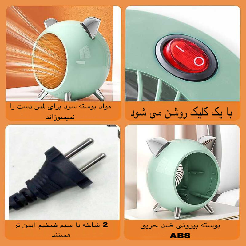 فن گرمایشی(هیتر) مدل AIR HEATER وسیله ای کارآمد با طراحی زیبا مناسب جهت گرم کردن خانه و اتاق شما در فواصل سرد سال می باشد. تعبیه سیستم ایمنی در صورت واژگونی دستگاه از جمله خصوصیات ممتاز این دستگاه می باشد.