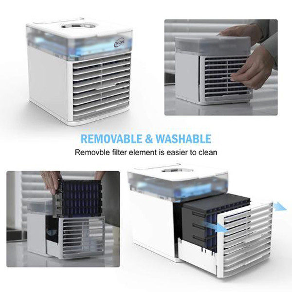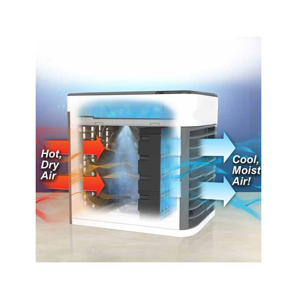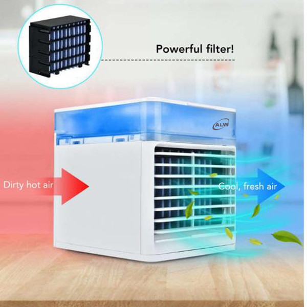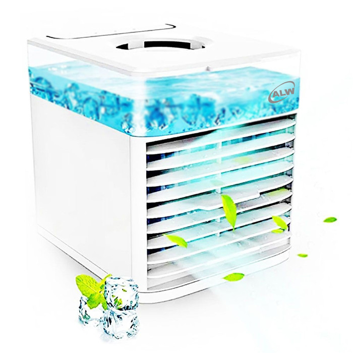 در حال حاضر که صرفه جویی در مصرف آب و برق بسیار مهم میباشد ، کولر آبی رومیزی میتواند یکی از راههای مناسب جهت از بین بردن گرما با مصرف کمترین میزان آب و برق باشد ، برق این کولر بوسیله پورت USB تامین میگردد و قابلیت اتصال به پاور بانک نیز دارد. در کناراین کولر زیبا مخزن آب کوچکی قراردارد که با پرکردن آن امکان استفاده از کولر به میزان تقریبی 8 ساعت وجود دارد. این کولر آبی دارای کلید تنظیم سرعت در سه حالت کم ، متوسط و زیاد میباشد. وجود چراغ LED در مخزن کولر که دارای 7 رنگ متفاوت میباشد زیبایی خاصی به این کولر رومیزی داده است . ابعاد کوچک این کولر باعث گردیده است که امکان استفاده از آن برروی میز کار وجود داشته و بهترین گزینه بعنوان یک خنک کننده رومیزی باشد.یک کابل تغذیه USB نیز در مخزن آب کولر قراردارد .دستگاه قابلیت تنظیم جهت پخش باد دارد از این نظر برای استفاده روی میز کار، چادرهای کوچک و فضاهای محدود بسیار مناسب است؛ همچنین در پاییز و زمستان با خشک شدن هوا، می توان برای مرطوب یا خنک نگه داشتن محیط گیاهان خانگی حساس از آن استفاده کرد. اگر کلا قصد استفاده از قابلیت خنک کنندگی ندارید، می توان در مخزن آن اکالیپتوس و مواد معطر ریخت تا فضا را خوشبو کند.