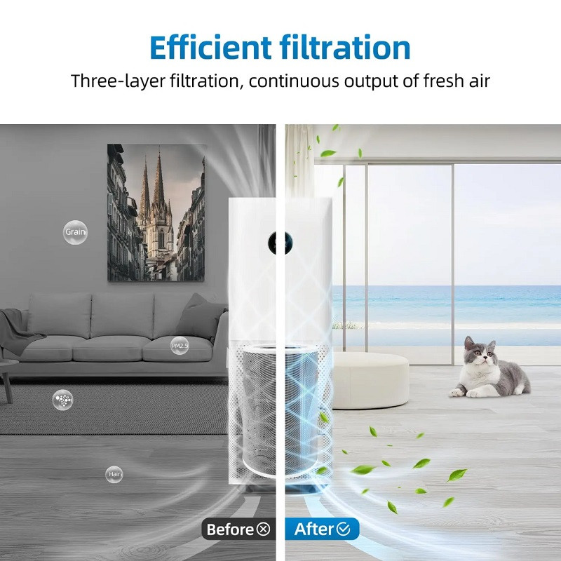 فیلتر تصفیه هوا هپا برای مدل 4PRO فیلتری بسیار قدرتمند با استاندارد بالای پاککنندگی کلیه ذرات و آلودگی های معلق در هوا را به طور کامل پاک کرده و کیفیت زندگی، طول عمر و سلامتی شما را بالا برده و از بروز آلرژی و ابتلا به انواع بیماریهای ویروسی و باکتریایی جلوگیری میکند. بوی بد هوا را از بین برده و فضایی دلنشین و مطبوع با هوایی سبک برایتان ایجاد میکنداین مدل دارای فیلتری سه لایه بوده که لایه اول Primary Filter نامیده شده که آلودگیها و ذرات درشت معلق در هوا مثل پرز و مو و گرد و غبار و ذرات درشت تر را فیلتر میکند. لایه دوم همان لایه True HEPA Filter بوده که همه ذرات تا 0.3PM را فیلتر میکند. لایه سوم کربن فعال است که فرمالدئید که از آلودگی های مهم و سرطان زا بوده را فیلتر کرده و بوی بد هوا را از بین میبرد
